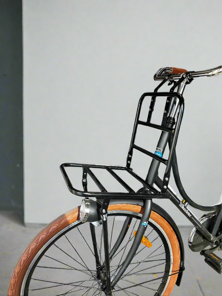 Front Rack designed for dutch bikes, looks like a seat however sitting a person on it is not recommended as its hard to control and you could potentially bend your axle!